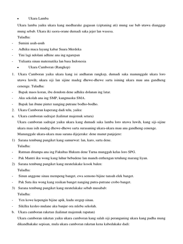 Yen dhapuring ukara kang ateges mrayogakake mung madeg kanthi dhapuring ukara lamba ukara-ukara iku durung bisa mujudake anane aweh mrayogakake. UKARA LAMBA LAN UKARA CAMBORAN 1. Gandhenge ukara lamba dadi ukara camboran lumrahe migunakake tembung pangiket kaya ta lan nanging mulane utawa tandha wacan koma.