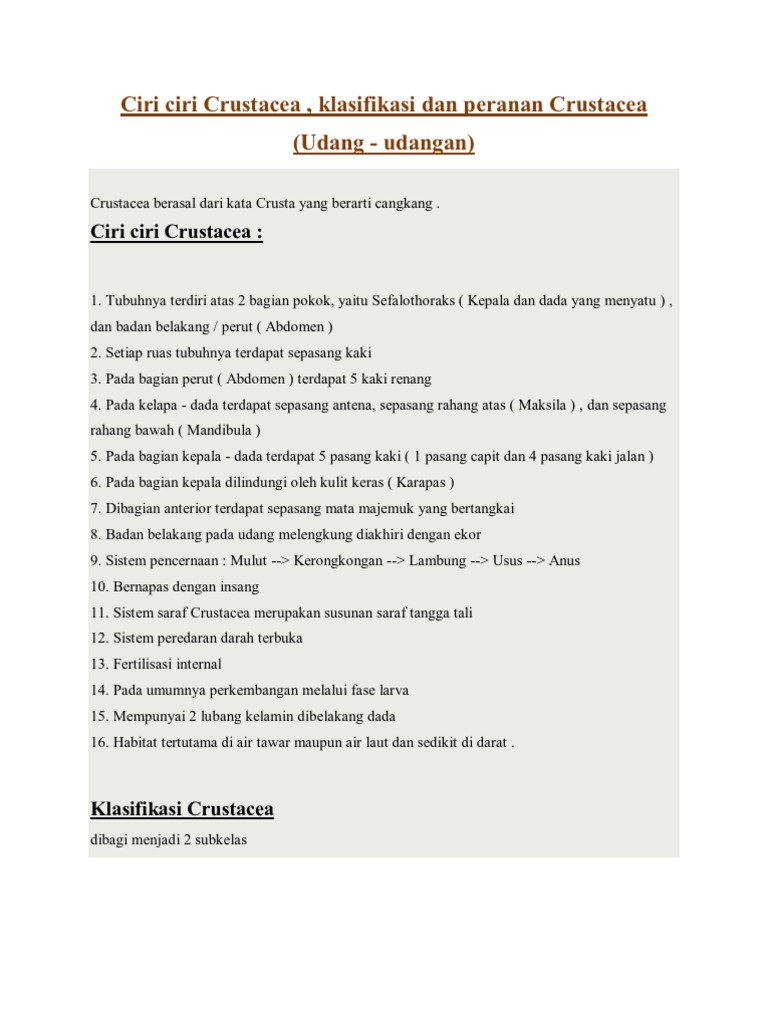 Di sini Anda dapat mempelajari lebih lanjut tentang krustasea. Crustacea Adalah Pada pembahasan kali ini kita akan mengulas materi mengenai makalah crustacea Klasifikasi crustacea Manfaat crustacea dan Struktur tubuh crustacea. Berikut ialah ciri ciri crustacean yaitu.