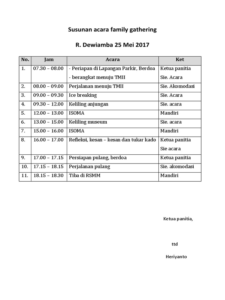 40 Koleski Terbaik Contoh Susunan Acara Family Gathering Kantor Feiwie Dasmeer