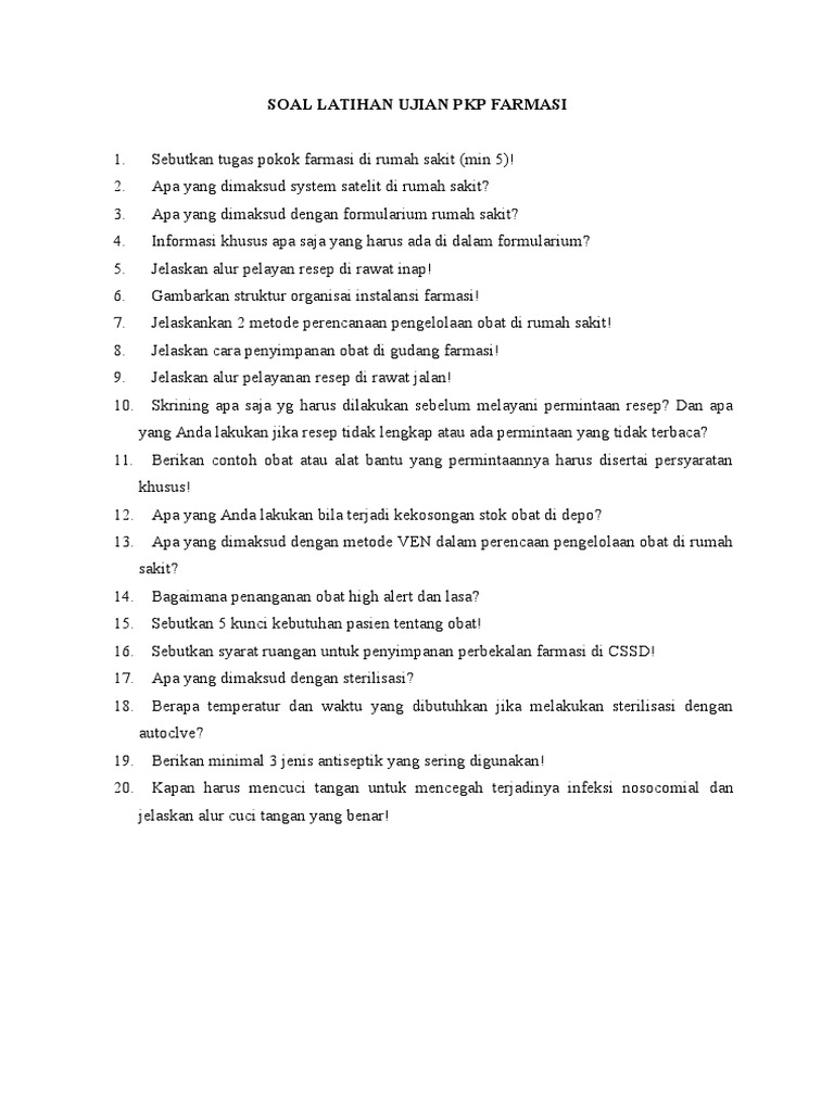 Soal Latian Ujian Farmasi Rumah Sakit Di Rsst