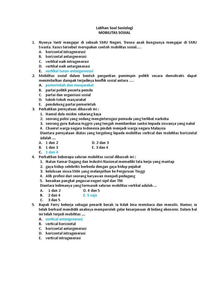 Mobilitas Sosial Klik di Sini 3. Kumpulan soal sosiologi Mobilitas Sosial serta jawabannya 1. Gimana kamu masih penasaran dengan mobilitas sosial nggak nih.