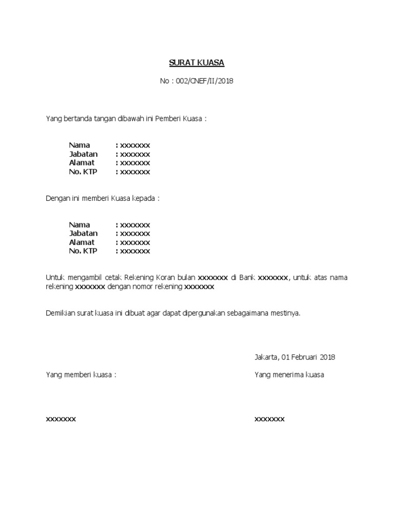Contoh surat kuasa cetak rekening koran bank mandiri. Jakarta 01 Februari 2018. Untuk lebih jelasnya perhatikan contoh dibawah ini.