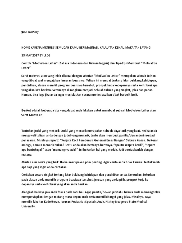 Contoh Motivation Letter Bahasa Indonesia Dan Inggris Yang Memikat