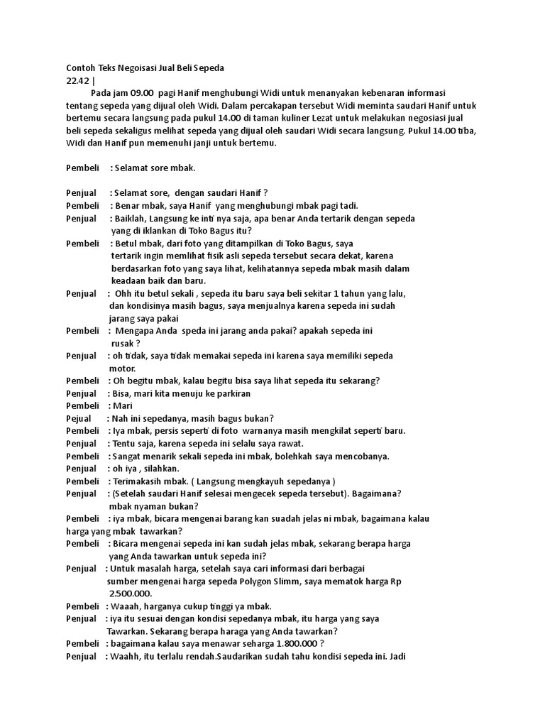 Contoh Teks Negoisasi Jual Beli Sepeda
