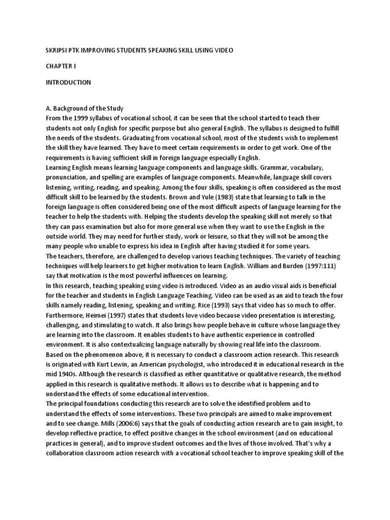Ini dia contoh skripsi bahasa Inggris tentang speaking. ABSTRACT Speaking is one of the important skills in communication. Speaking skill is one of difficult skill to learn for the students.