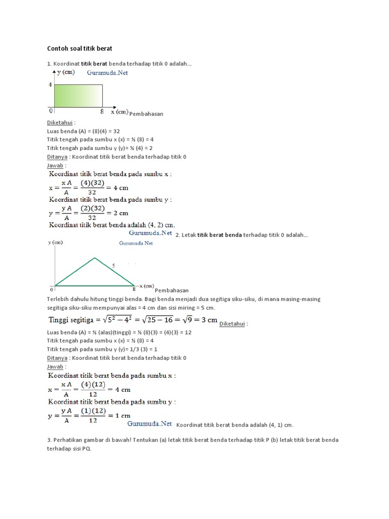Contoh Soal Dan Pembahasan Tentang Titik Berat Benda Materi Fisika Kelas 2 Sma