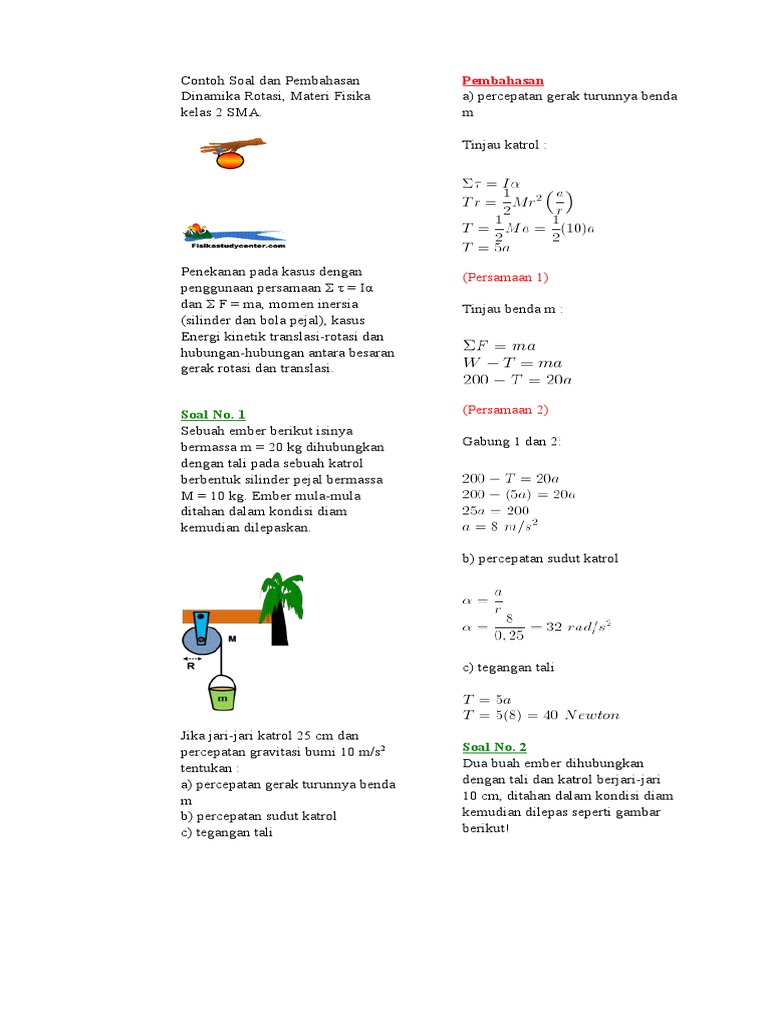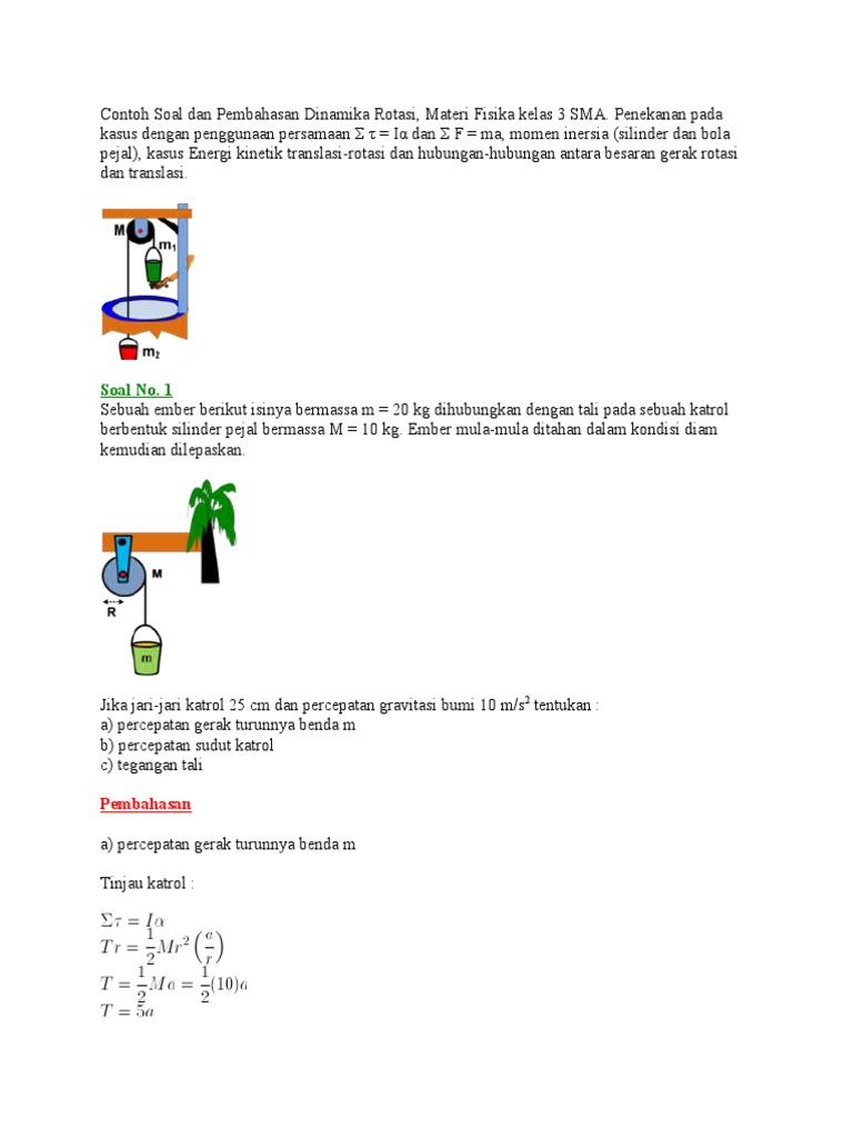 Contoh Soal Dan Pembahasan Dinamika Rotasi Materi Fisika Kelas 2 Sma Pembahasan A Percepatan Gerak Turunnya Benda M Pdf