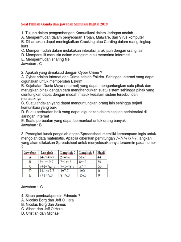 Soal Pilihan Ganda Dan Jawaban Simulasi Digital 2019 Docx