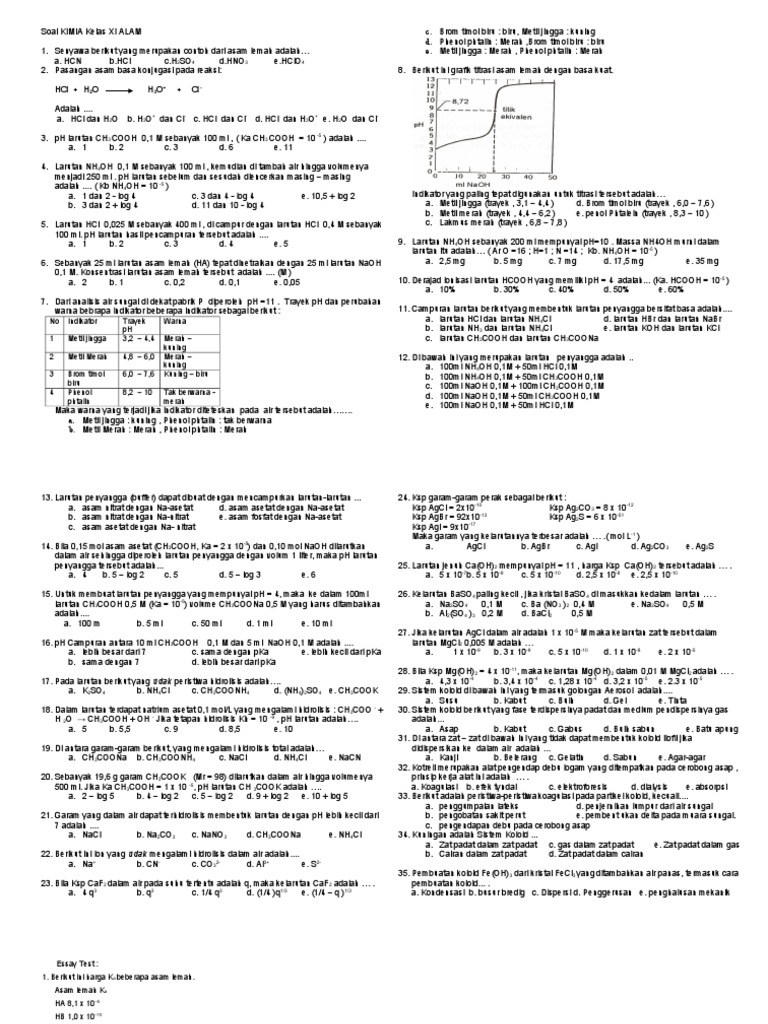 Soal Dan Jawaban Kimia Kelas 11 Semester 2 Ilmusosial Id