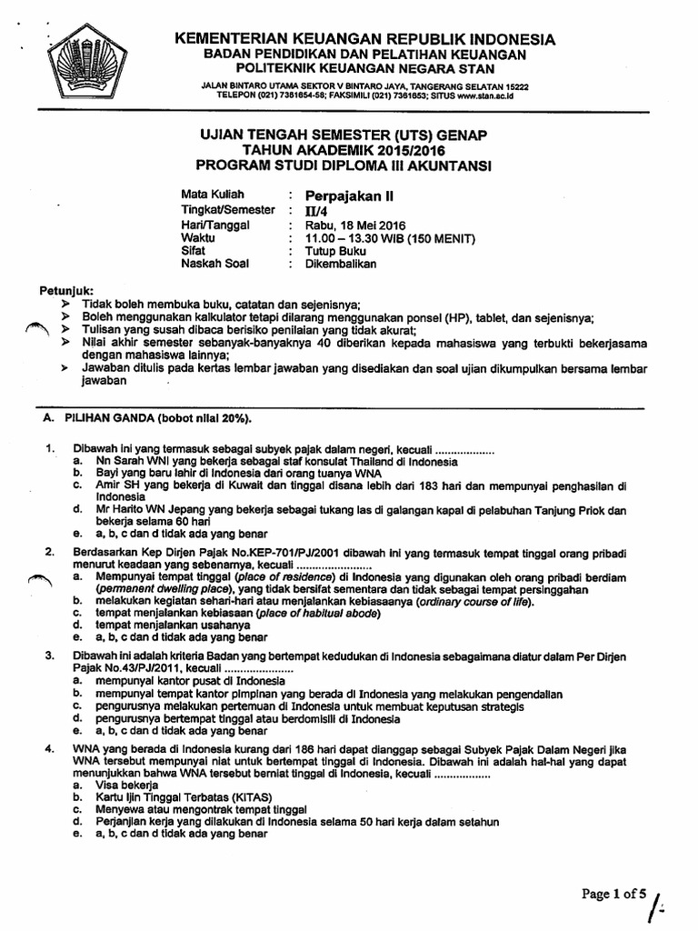 Soal Ujian Ut Universitas Terbuka Perpajakan Dan Kunci Jawaban Untuk Semua Semester Soalut Com