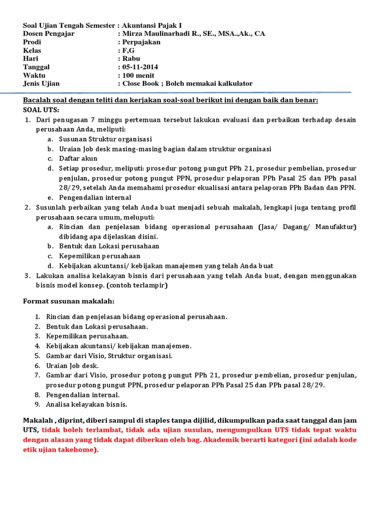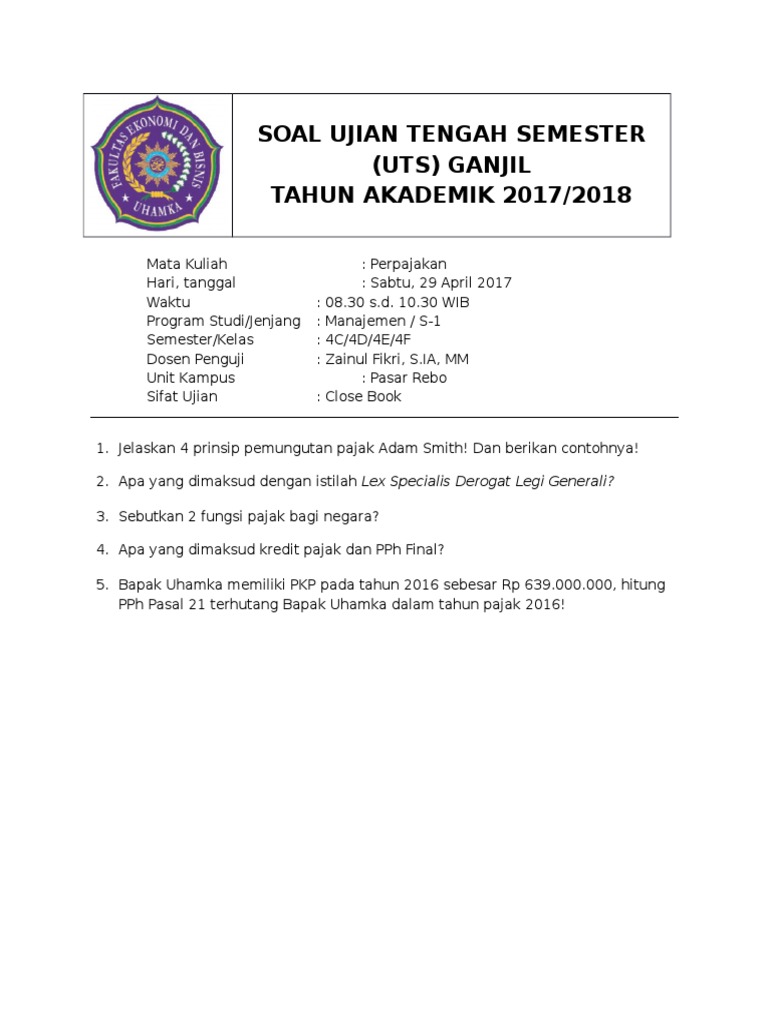 Contoh Soal Uts Pajak 2 Docx Ujian Tengah Semester Perpajakan 2 Dosen Waktu Sifat Tim Dosen 150 Menit Open Uu Saja Petunjuk Umum 1 Kerjakan Soal Soal Course Hero