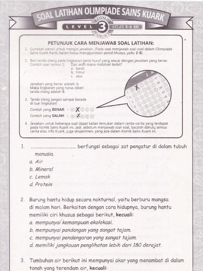 Bank soal kuark level 6. Jawaban untuk beberapa soal dapat kalian temukan dalam cerita-cerita yang terdapat pada Komik Sains KUARK ini. Interested in flipbooks about Bank Soal AKM Level 5-6. Setahun yang lalu tepatnya 20 Februari 2010 seharusnya Satria mengikuti babak penyisihan Olimpiade Sains Kuark di sekolahnya SD Muhammadiyah Condongcatur Pusat.
