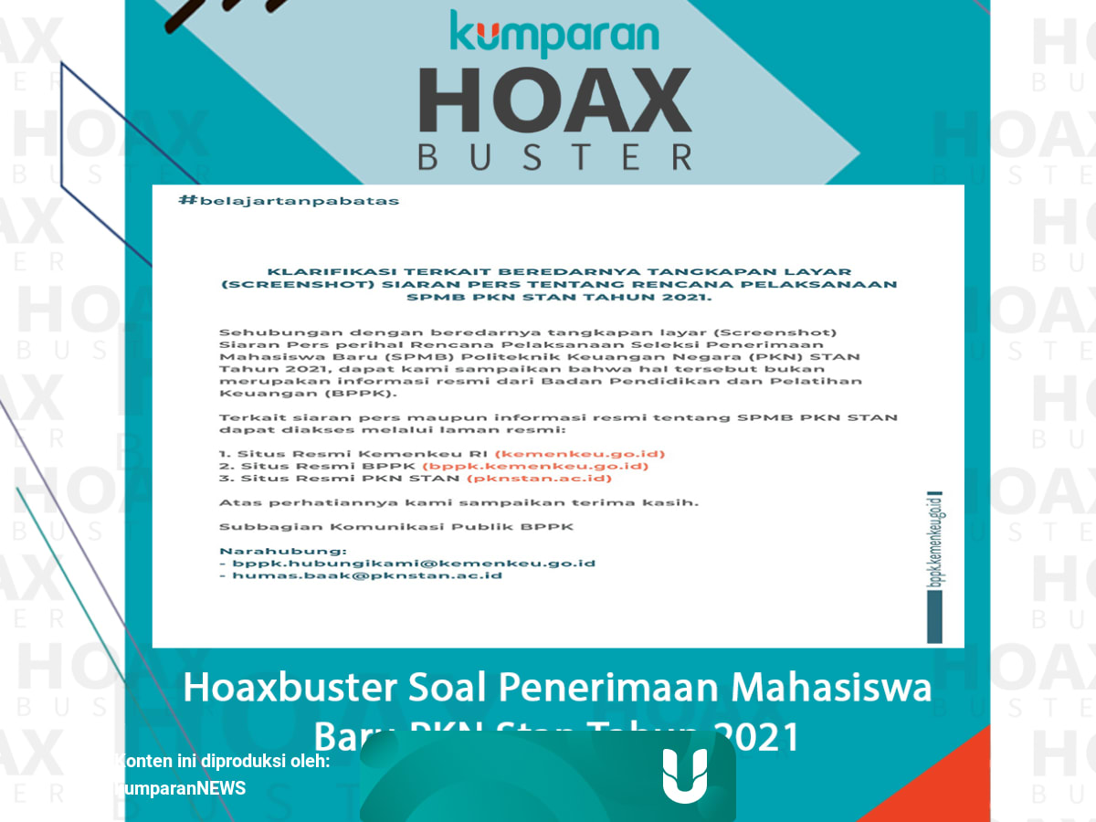 Hoaxbuster Bppk Kemenkeu Buka Pendaftaran Calon Mahasiswa Baru Pkn Stan 2021 Kumparan Com